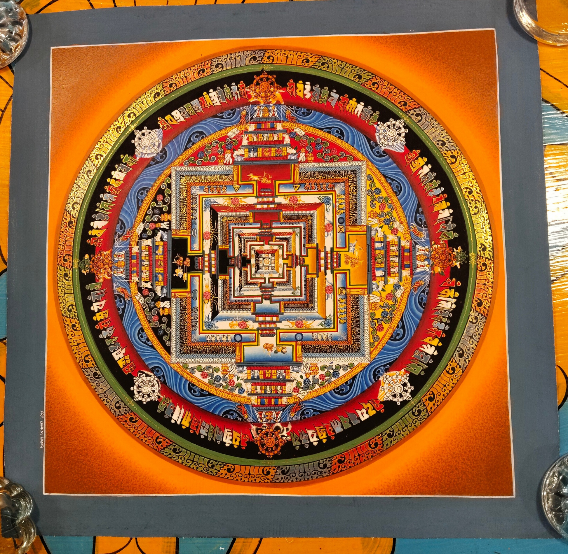 Kalachakra Mandala – Unique Hand-Painted Thangka 32x32cm. (TA9)